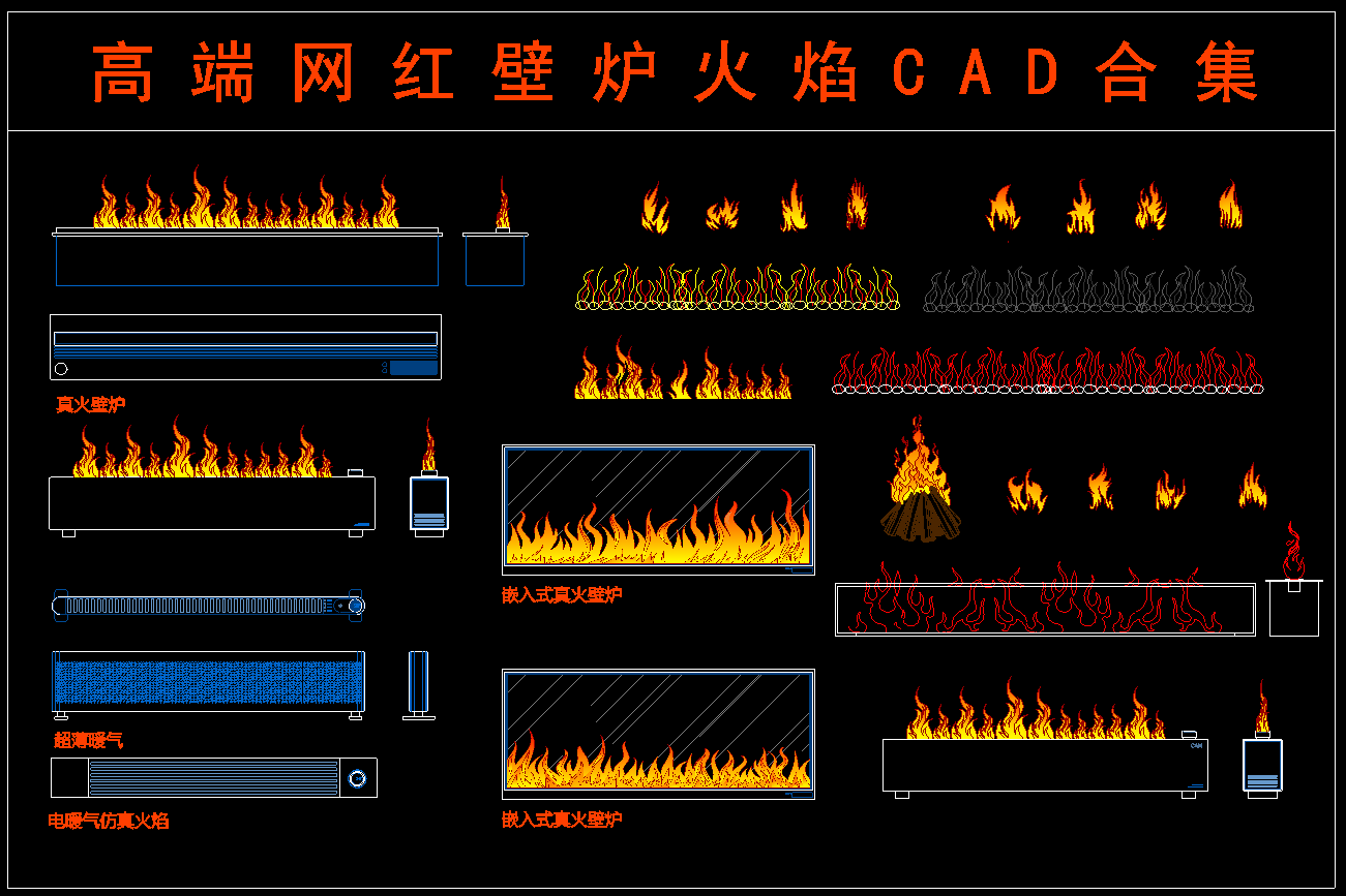 网红壁炉CAD 暗藏壁炉、电子壁炉 dwg