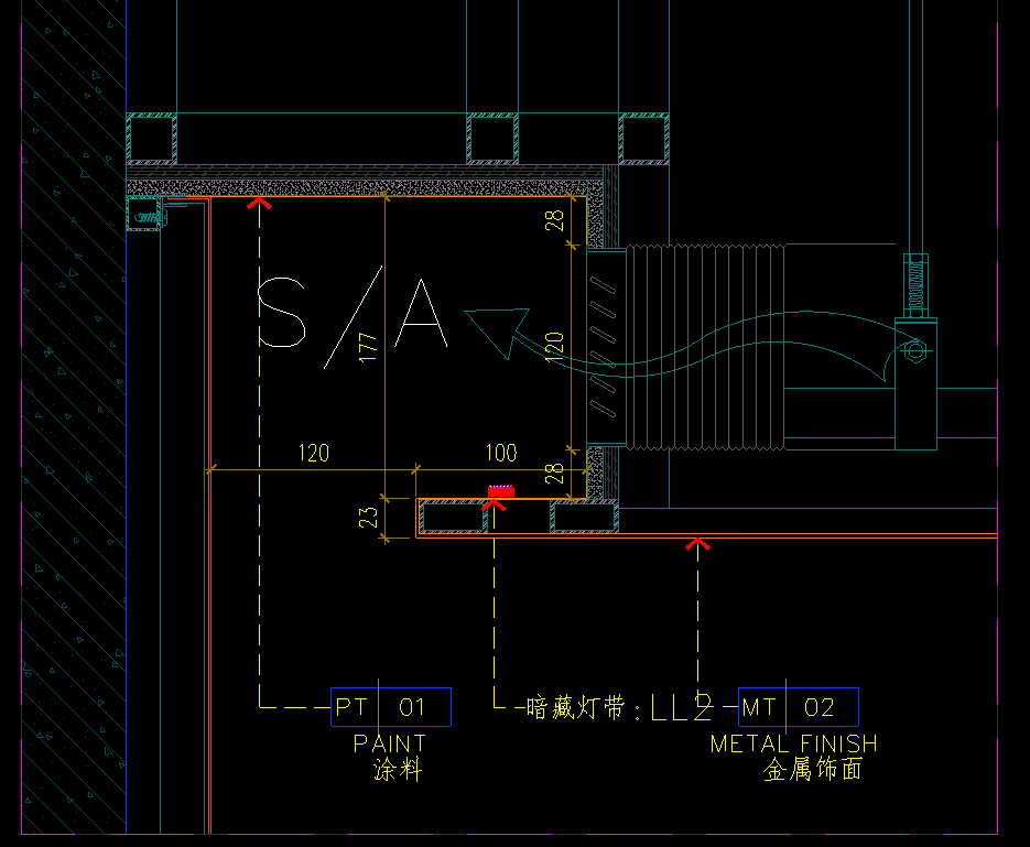 金属板,铝单板天花上固定灯具,安装装饰风口收口,节点图长什么样?怎么收口?