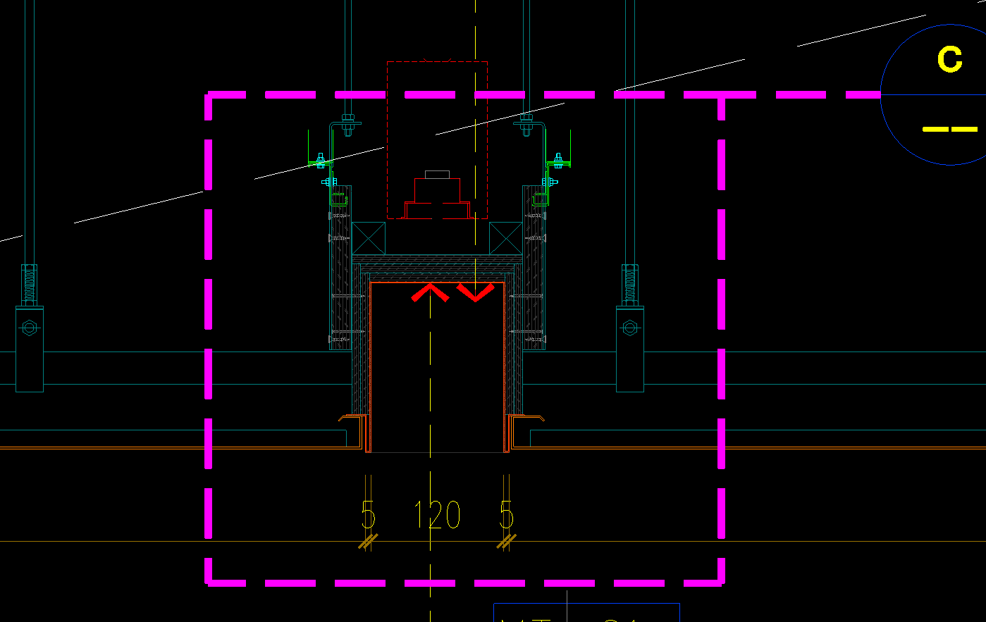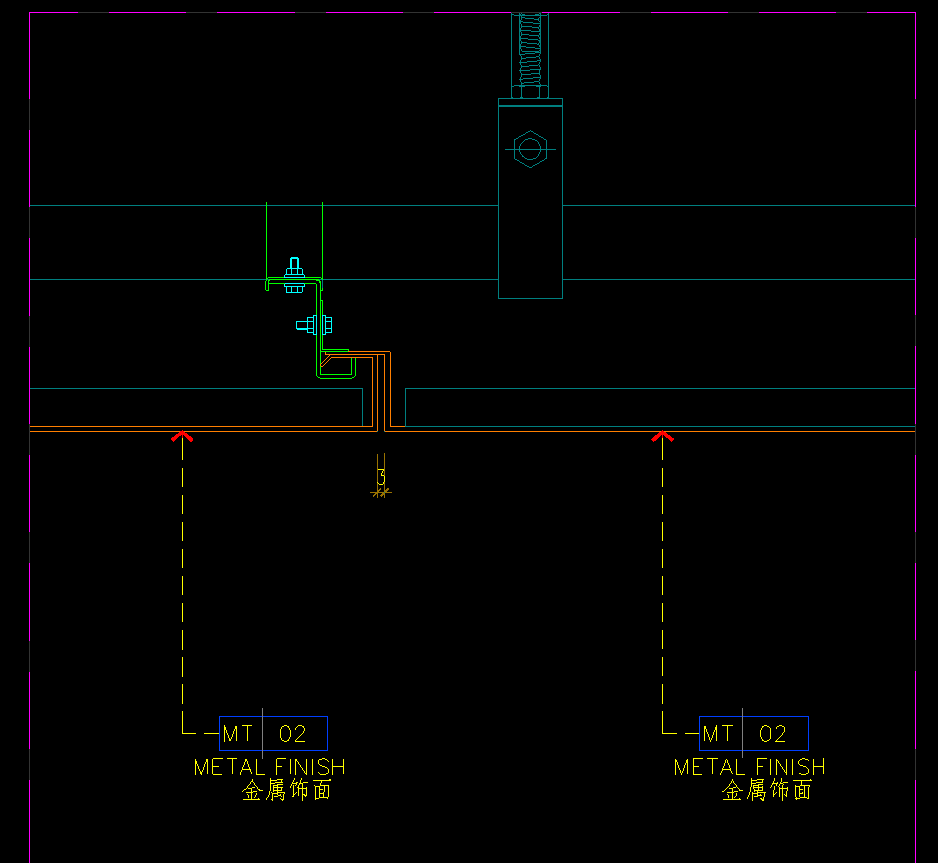 △ 灯具与金属铝板平面天花收口节点
