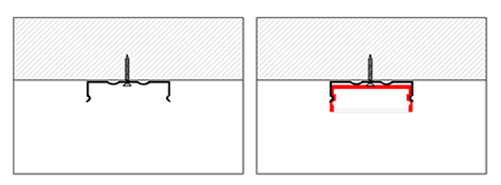 批灰款:木工吊顶阶段按照型材规格留好尺寸,批灰前安装型材。这种安装方式时间久了,会出现型材与石膏板结合处裂缝问题,不建议石膏板吊顶采用此种方式。