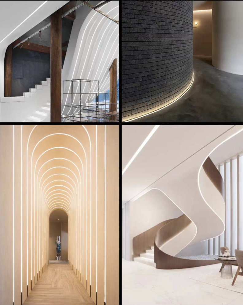 多用于做异性灯带设计,可任意弯曲,凹凸百变造型,造型感更强,塑造的空间视觉效果更具冲击力。