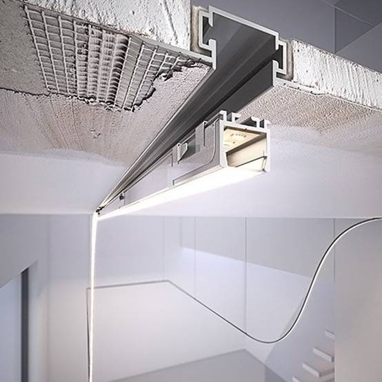 嵌入式LED灯带字面含义是,将LED灯带通过型材或开槽的形式将主体嵌入天花、墙面或是地面材料,使其主体部分隐藏或少部分可见,达到见光不见灯灯效果。