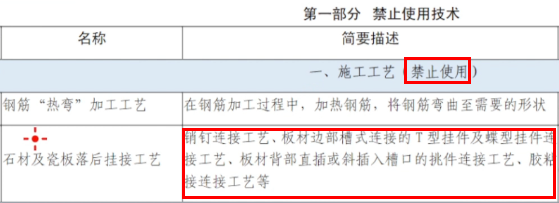 2025年8月8日起,住建部发布的《房屋建筑和市政基础设施工程禁止和限制使用技术目录(第二批)》正式施行,其中明确禁止“石材及瓷板落后挂接工艺”在新开工项目中使用。