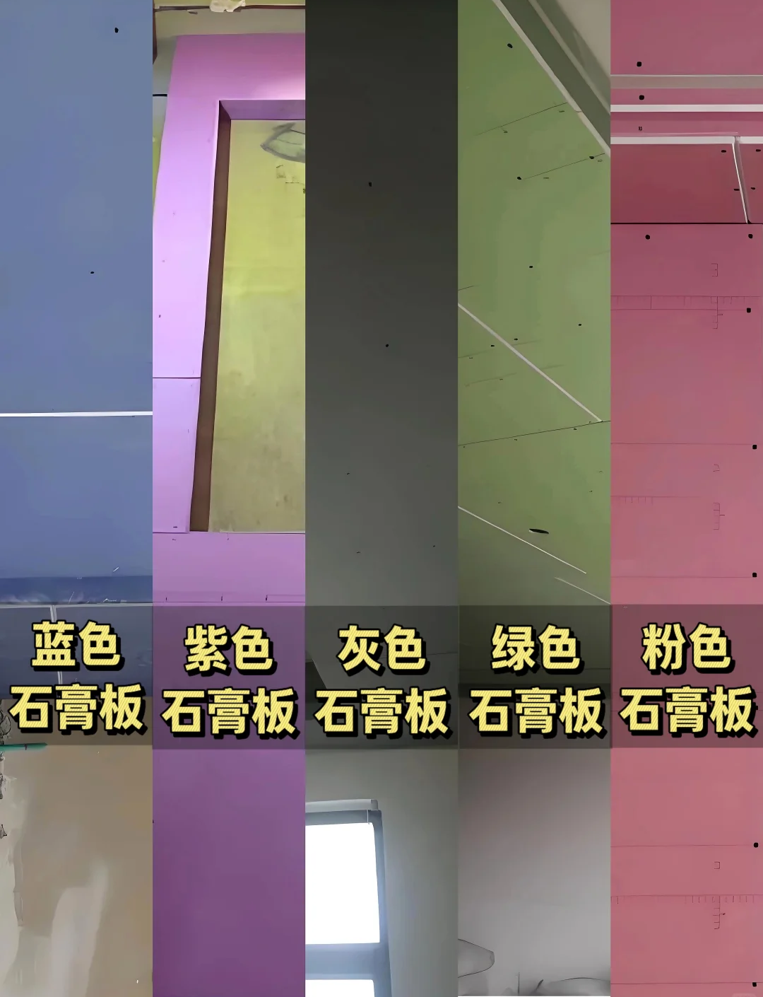 下面,我们就用市面上常用的石膏板颜色,来带你了解一下石膏板的功能。