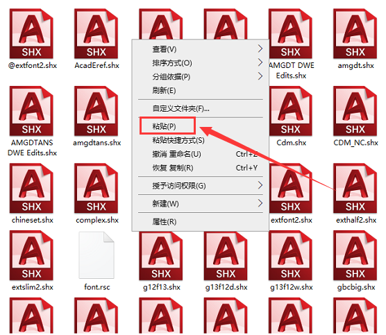 然后,我们再导入字体,将需要导入的字体文件【粘贴】到此文件目录中即可成功导入字体;