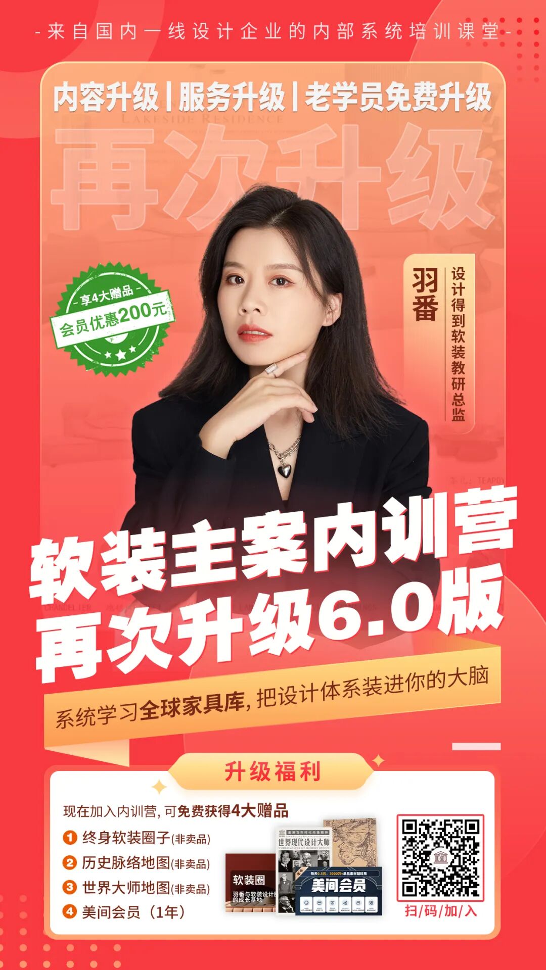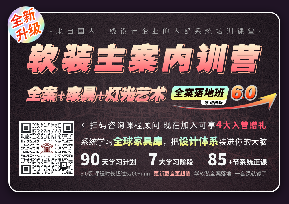 简单来说《软装主案内训营•全案落地班》6.0就是一整套系统可落地实战课程,本次升级带你系统学习全球家具库,助你构建设计体系,让软装全案落地更值钱!