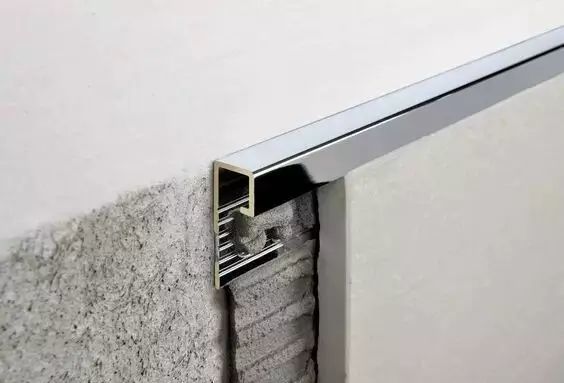 墙与地的阴角收口,通常采用墙压地的形式,不能出现朝天缝。采用金属收口条,会得到更加整洁与美观的效果。如下所示: