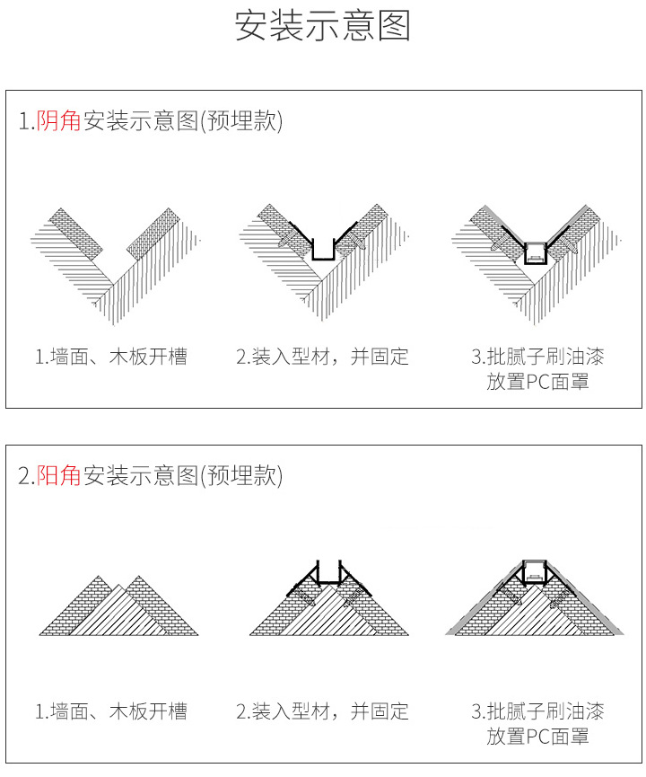 b、墙面粉刷前提前安装无框铝型材预埋件;
