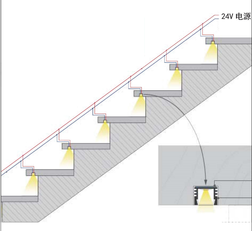 ps:扶手灯具需考虑用电安全(IP65防护等级、24V低压)!