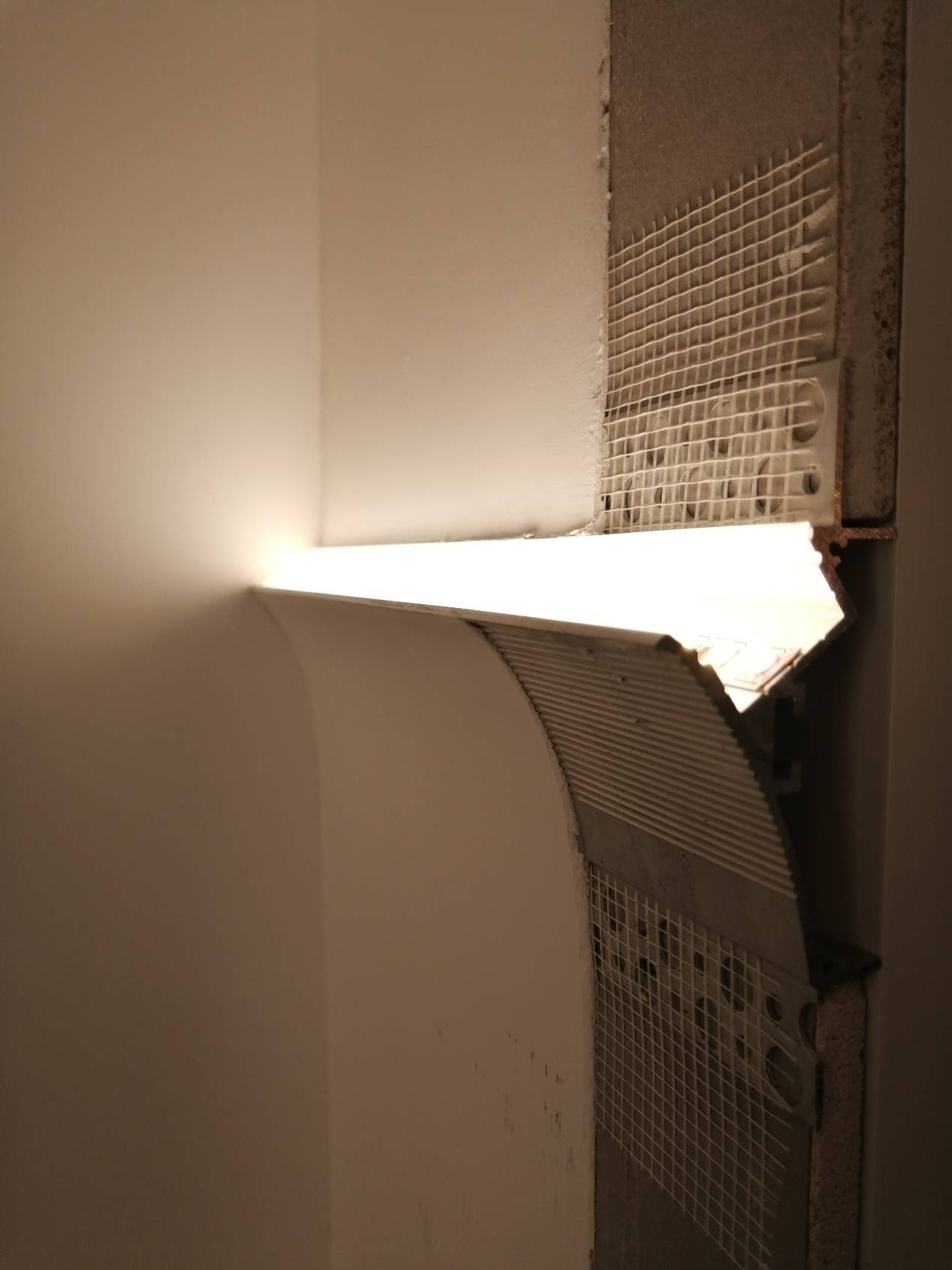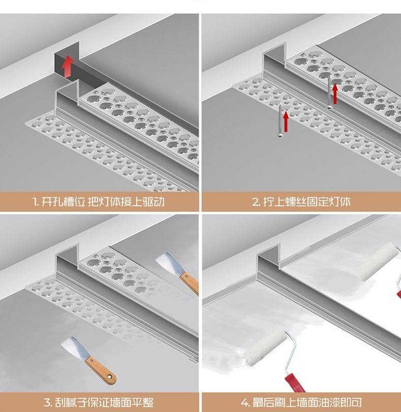 c、墙面批腻子及油漆覆盖铝型材边框,完成后内贴灯带面封亚克力盖板;