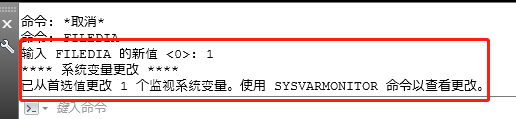 1、命令栏输入命令FILEDIA——输入1值——回车确认;