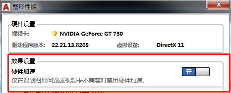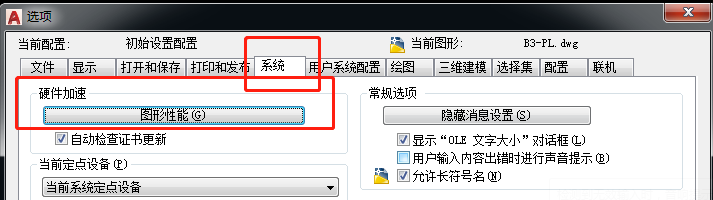 1、输入OP——系统——图形性能——打开硬件加速,就可以提高CAD运行速度了。