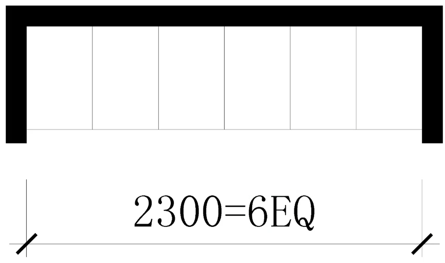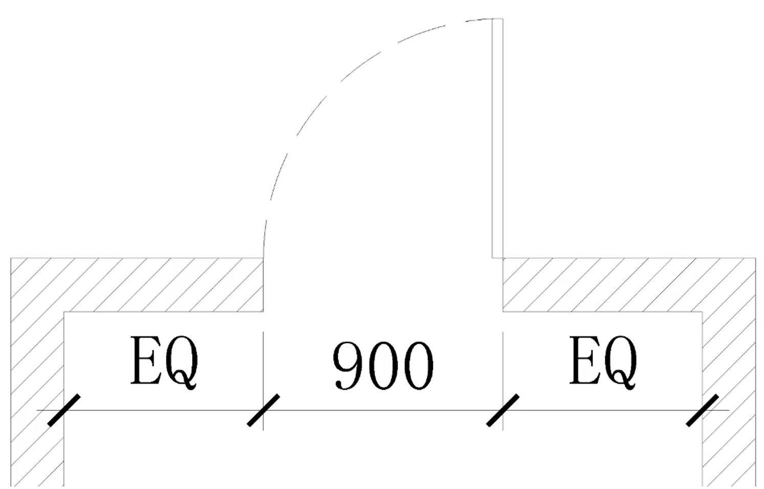 1、什么是对齐? 不同于对称,对齐一般是办公软件中,编辑窗口对于编辑内容的一种调整方式,一般有:左、右对齐,居中对齐,两端对齐和分散对齐。 而在CAD图纸中,主要是为了标注室内相关部位或者图纸中在某一平面中的齐平关系。 △以上红线标注处是齐平关系 2、什么是对齐符号? 同样的,在CAD图纸中,对齐的主要表达如下: 它的结构主要就是2个箭头和一根同时向一侧转弯的虚线组成。在被箭头指向的物体或者相关图纸部分,则表示这2个目标是齐平的状态。 3、对齐在图纸上如何表达? 下面的平面空间中,就有几个部分是有齐平关系的,你如果知道,可以试着找一下,然后对着最后的结果看一下是不是和你找到的一模一样。 △找一找看看哪里有齐平关系? 你找到几个有齐平关系的?下面来给你揭示答案: 了解了大概图纸中会标注齐平的部分后,再给你看一张在实际项目中使用齐平符号的图纸: 可以从以上的标注中总结出来:物体之间距离较远,但是齐平不明显的地方,可以标注齐平符号。 03. 「EQ」符号的相关介绍 1、什么是EQ? EQ是 equally divide 的缩写,翻译过来就是等分的意思。等分在百度百科中的注释为:等量划分,就是将一个物体或数量等分几份的一种解题方法。 在CAD图纸中,主要解释的是,标注对象是完全相等的几份。 2、EQ符号在图纸上的表达是什么? 当然,在CAD中常见的等分标注与尺寸标注大致相同,只是数据变成了EQ的字母。 3、EQ在图纸上如何运用? EQ符号使用是主要有2个不同的表达: a、当图纸中确定某一个尺寸后,说明两侧的绝对相等。例如门洞的尺寸以及位置确定,不清楚施工后两侧墙体的具体尺寸,采用等分符号标注门两侧的绝对相等,门处于居中位置且尺寸确定。 b、当某些家具或者墙面造型等,在设计过程中需要等分出相同数量的部分,但是在图纸上无法整除的情况下使用。例如2300mm的衣柜需要6等分的情况下,因为无法整除,直接使用 2300mm=6EQ 就阔以了~ 总之,等分在图中中会出现,主要就是为了保证:中间尺寸确定,两侧需要等分的情况;总长度确定需要全部等分的情况。