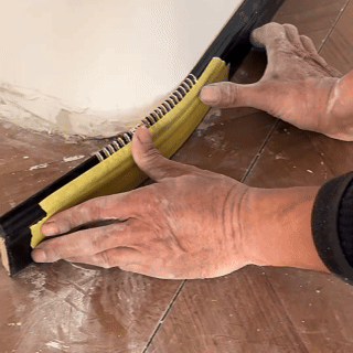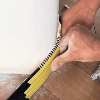 实木踢脚线是目前使用比较多的一款踢脚线材料,实木踢脚线做曲面比较复杂,主要是采用热弯技术:在实木踢脚线背面开V字槽,然后用热风枪加热,让实木软化,然后慢慢弯曲,直到贴合墙面。