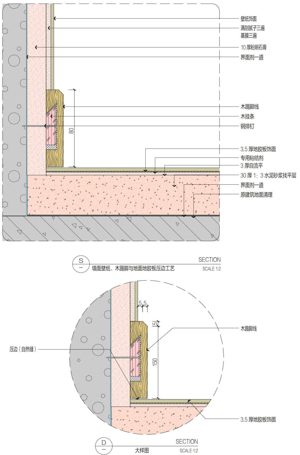 木踢脚线安装工艺节点↑