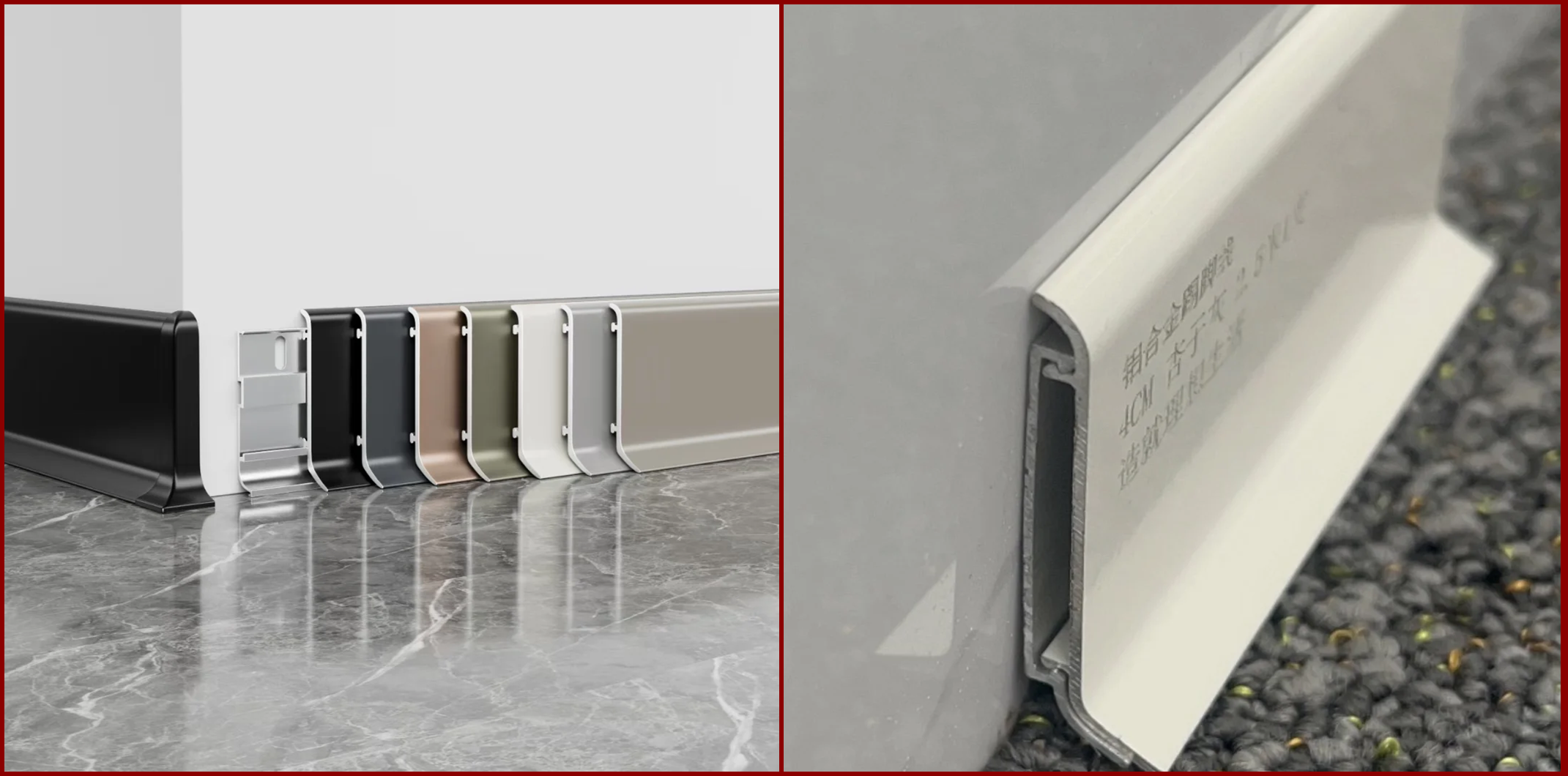 铝合金踢脚线柔韧性好,强度高,是比较适合异形墙面的。金属质感强,色泽持久不褪色,适合多种风格的装饰。