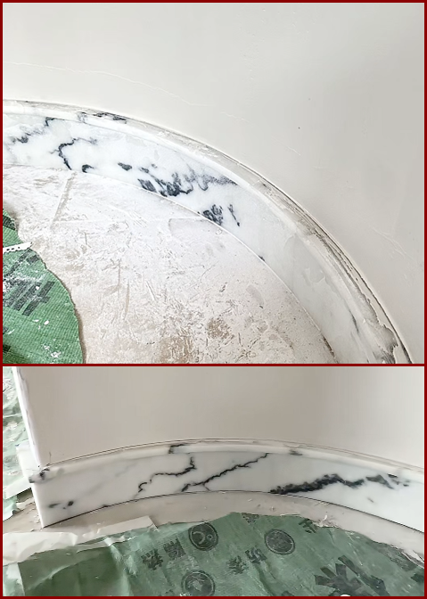另一种方法就是,把石材分成小段,现场拼接弧度,这种质感不如一体式,拼接不好,会影响美观,但性价比较高。