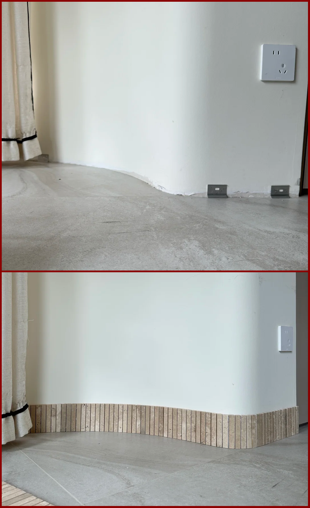 最近有小伙伴问:曲面墙的踢脚线怎么做?
