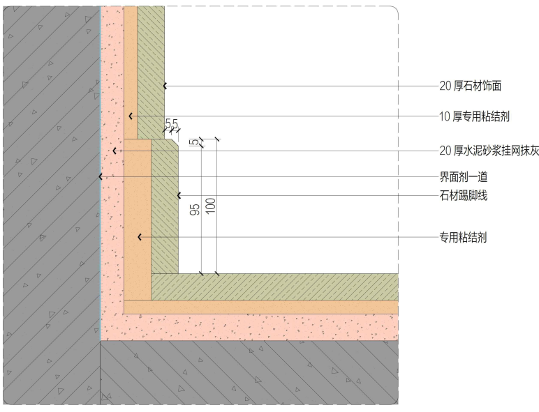 石材踢脚线安装节点↑