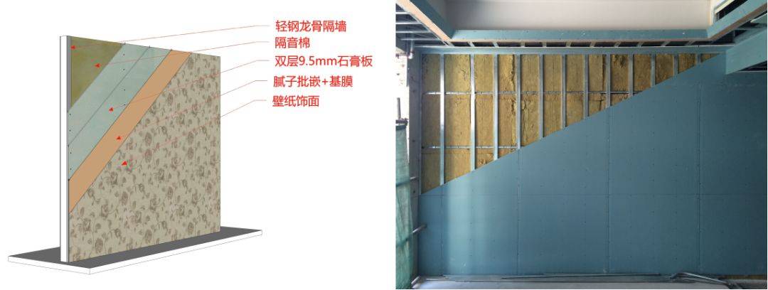 通过灵活运用龙骨的排布方向,进行整体墙面厚度的控制。