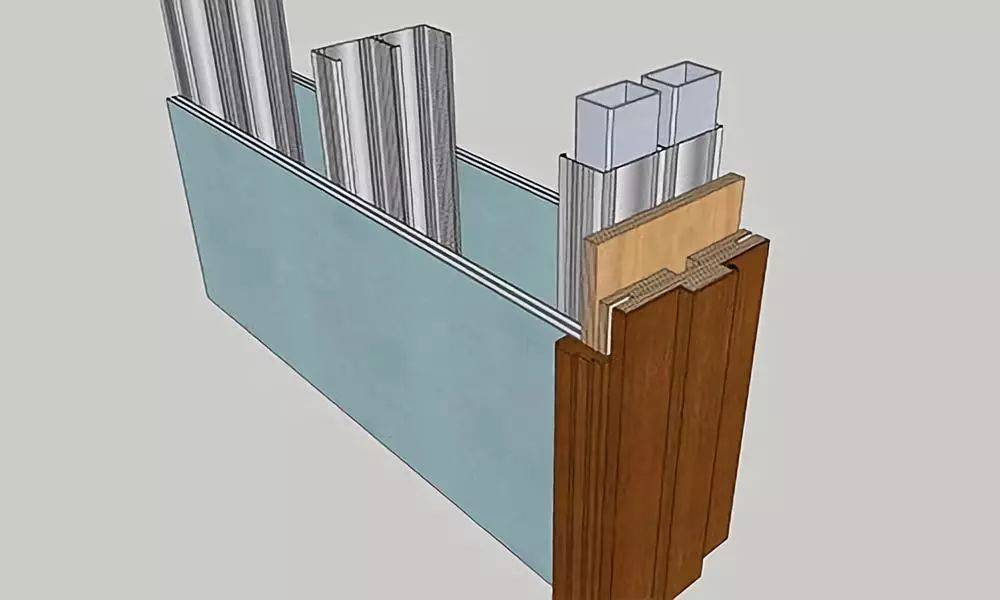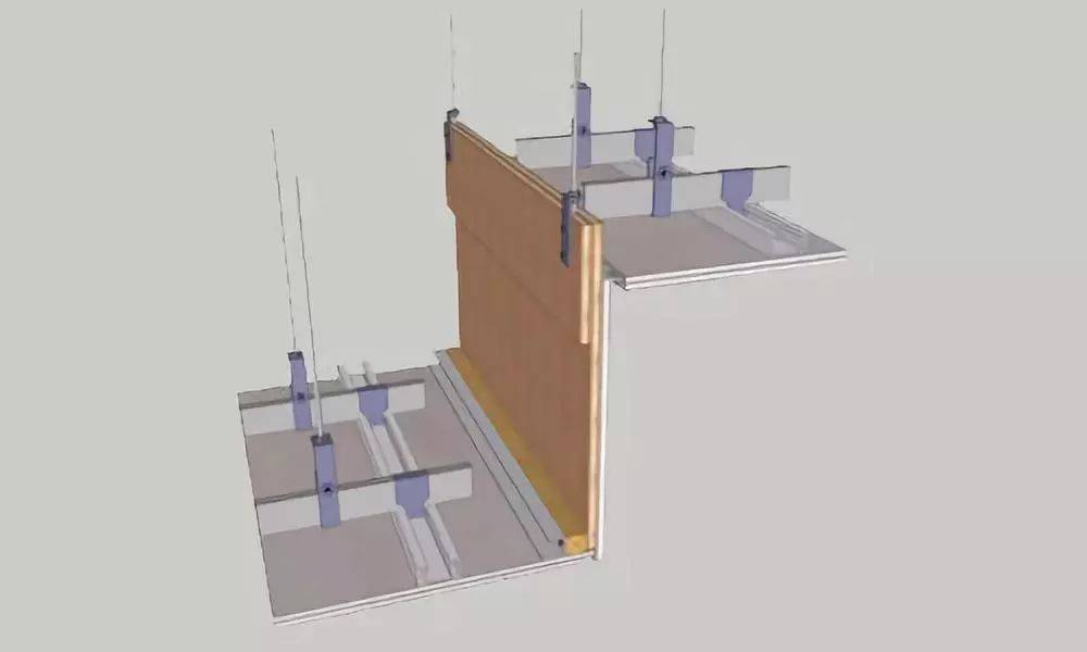 涵盖了38卡式龙骨+50付龙骨+9mm多层板+12mm木挂条+15mm木饰面板。
