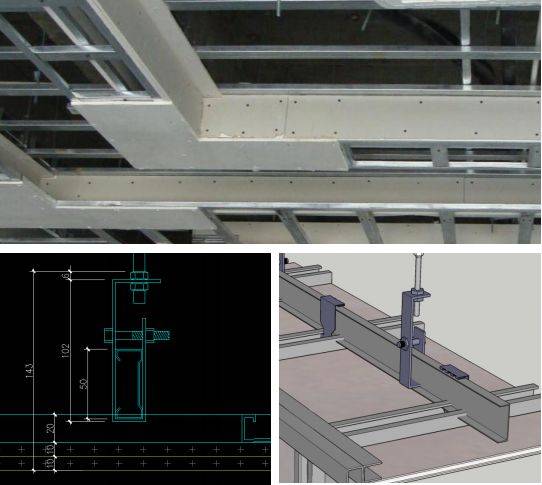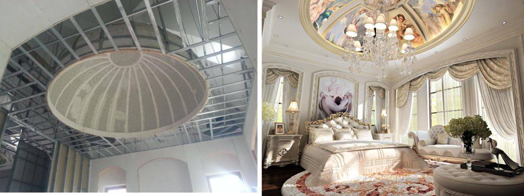 常规的分层石膏板吊顶基层:在高位天花吊顶到土建结构的尺寸要保证15cm的尺寸才可以使用下方的工艺做法。