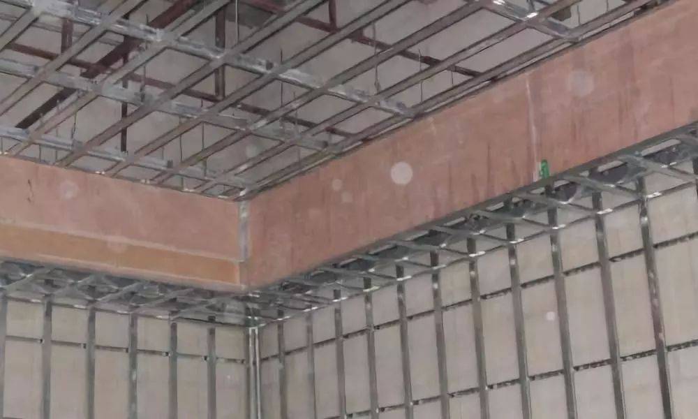 现场卡式龙骨+副龙骨,通过卡龙调整土建的平整度,再根据现场实际情况确认封9厘板(12厘板),保证设计的完成面尺寸。