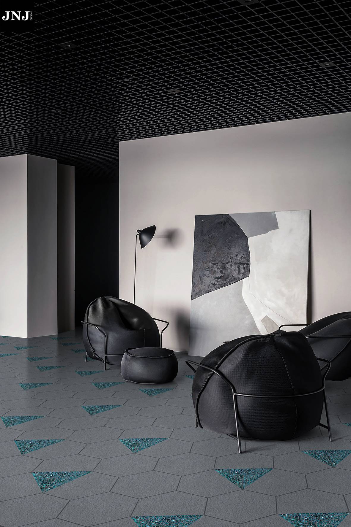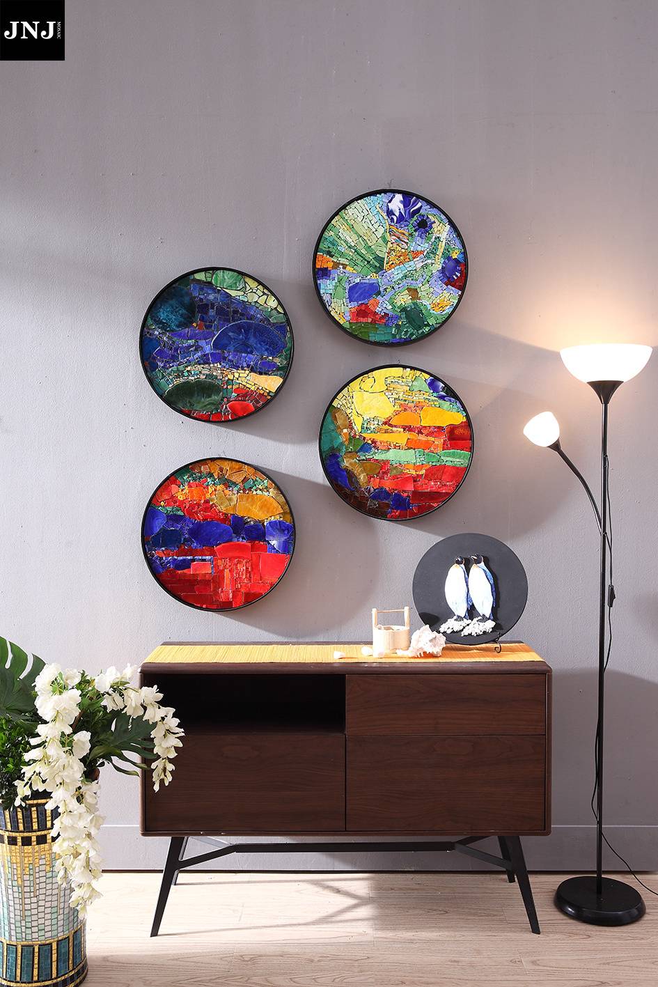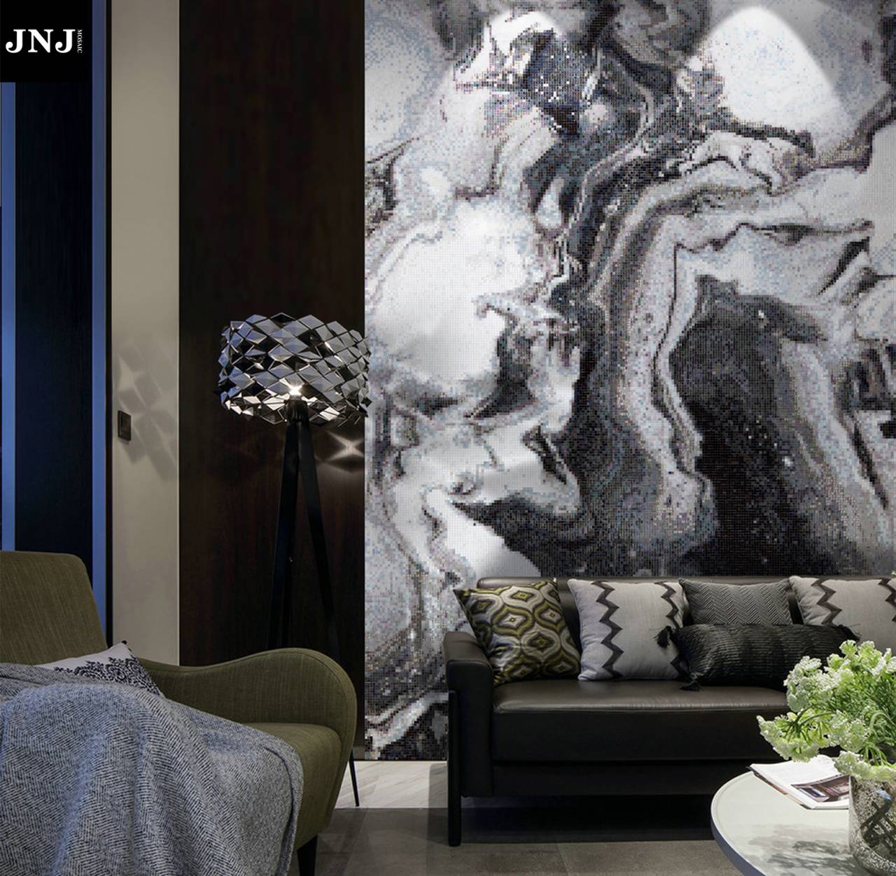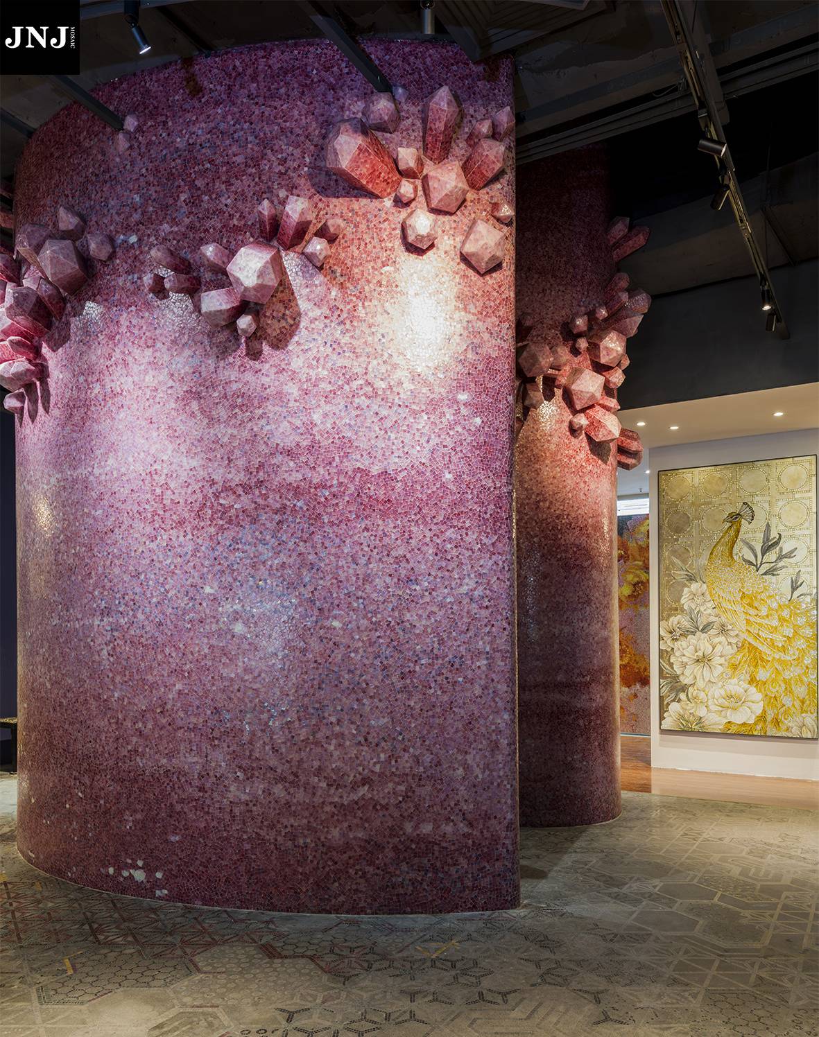 JNJmosaic作品《圆·翎》应用场景及局部工艺