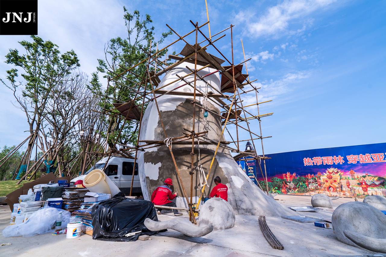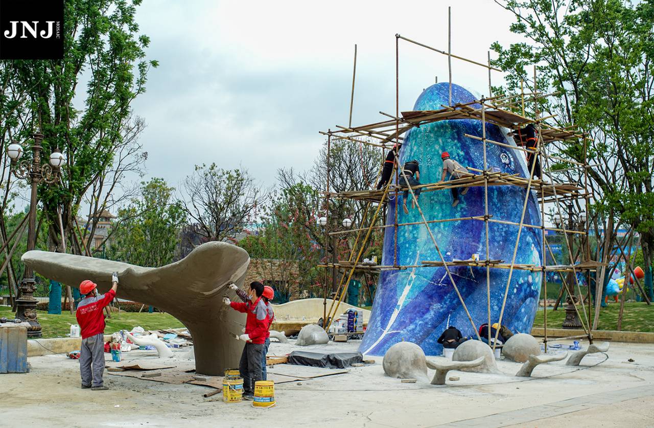 今天,咱们就来聊聊关于马赛克的那些事,以一个极具马赛克肌理感、色彩感的艺术装置项目(恒大童世界乐园——蓝鲸艺术装置)为例,呈现高端艺术马赛克的设计施工流程,主要解决以下问题: