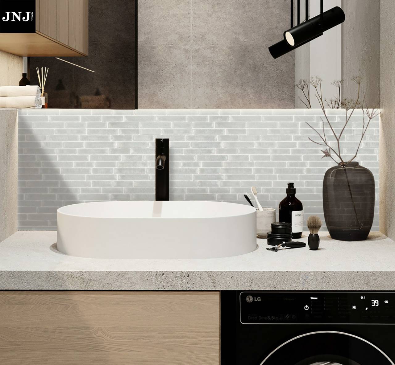 马赛克镶嵌艺术通过和软装单品结合,不同形态元素相互碰撞,撩拨观感的同时令空间层次更为丰富。