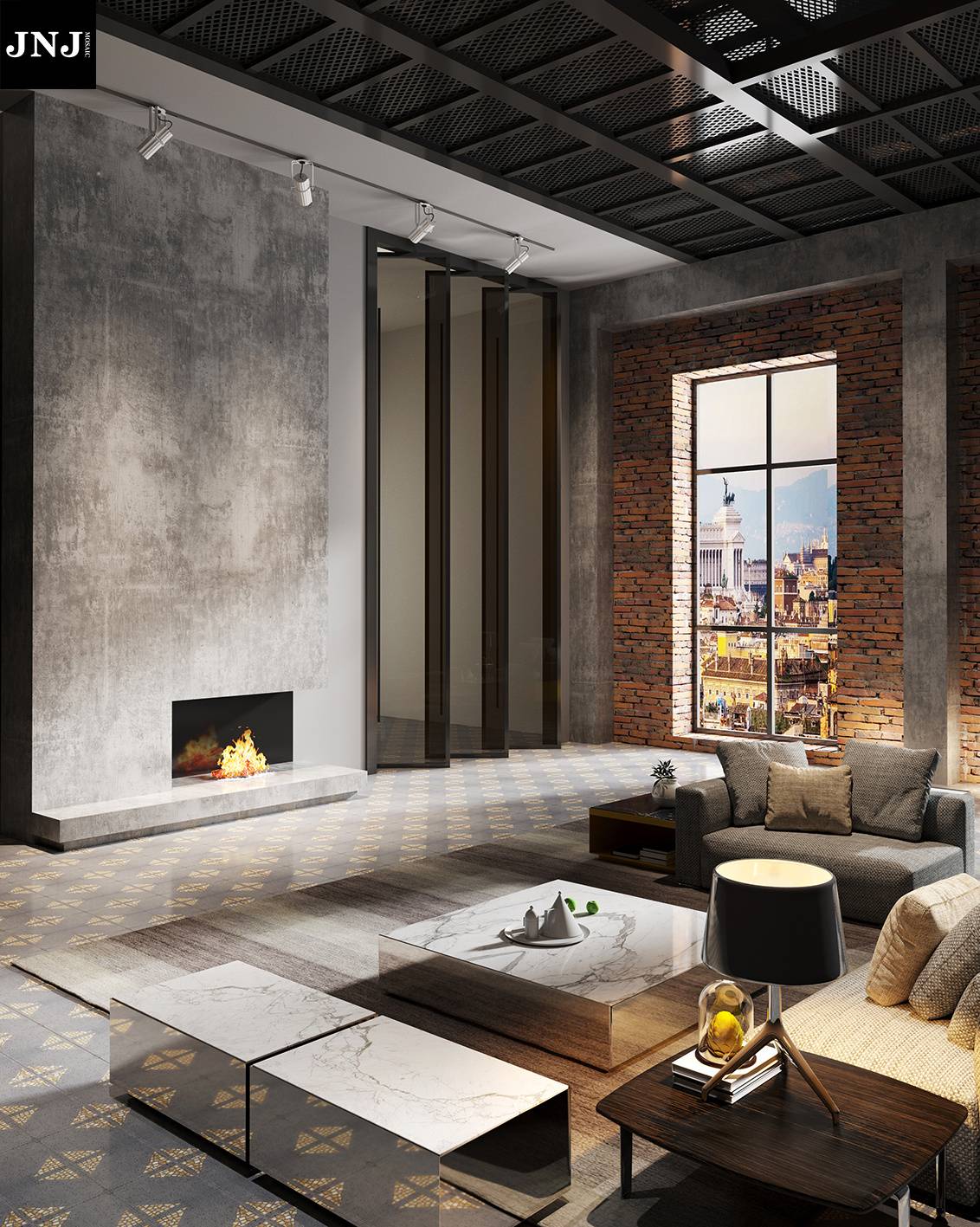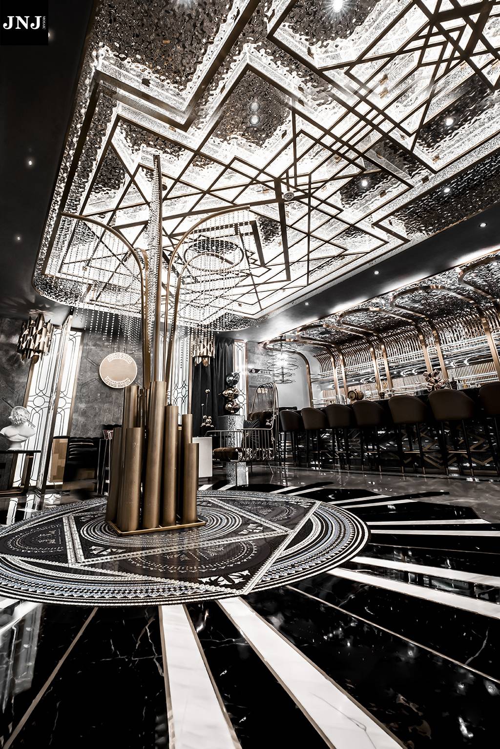 JNJmosaic作品《鎏金熔动》应用场景及局部工艺