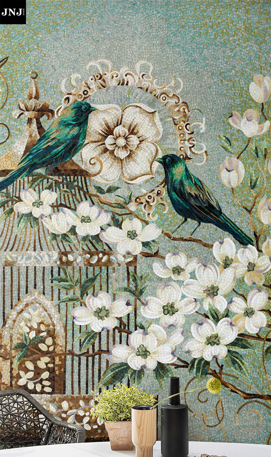 JNJmosaic作品《群鹤咏》应用场景及局部工艺