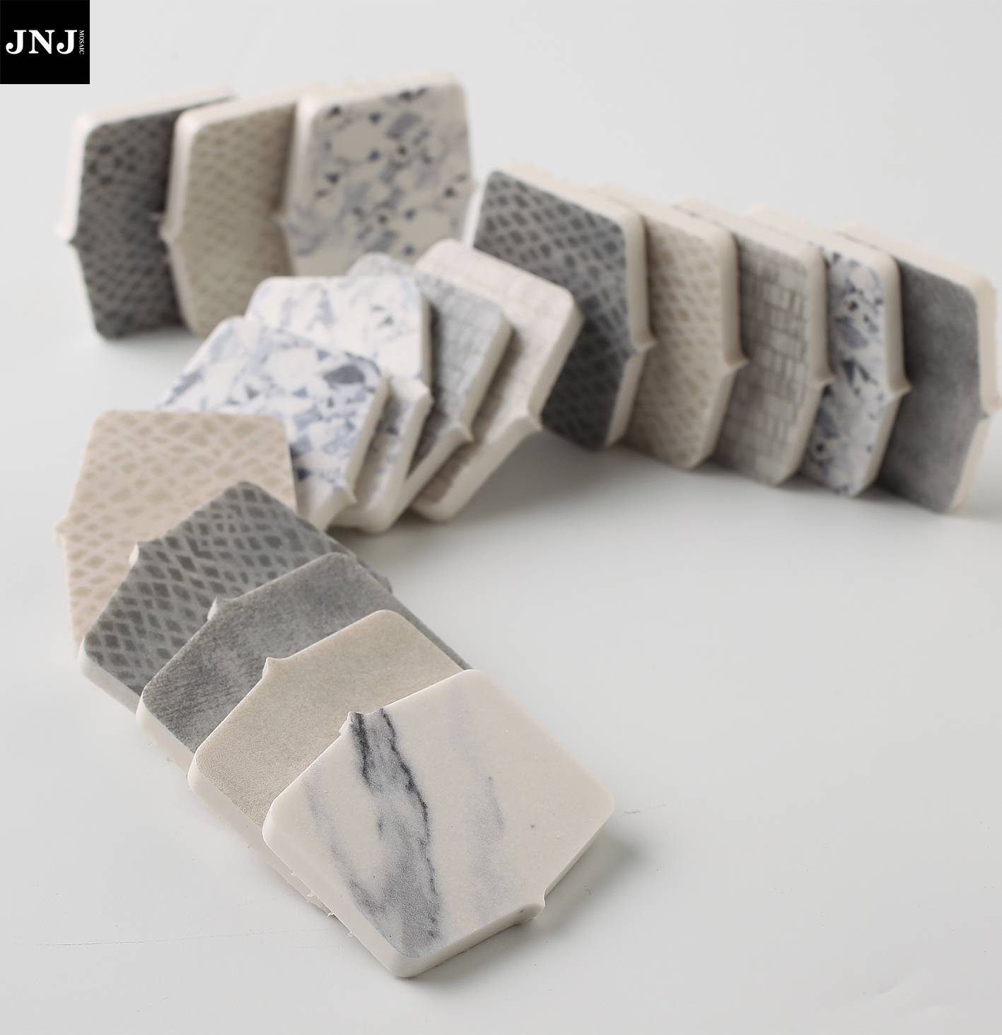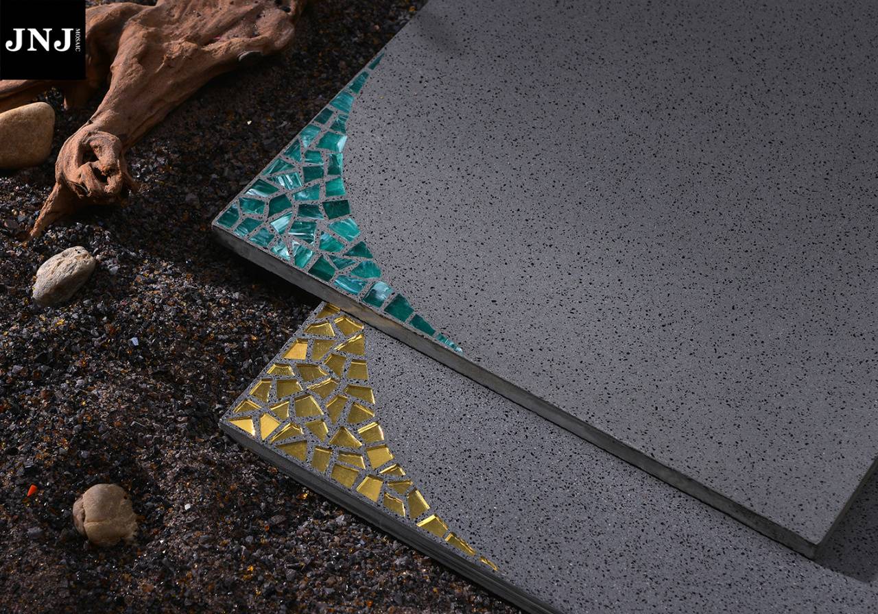 由马赛克与混凝土结合而来的马赛克镶嵌砖,采用自然浇注一体成型,标准化出模。