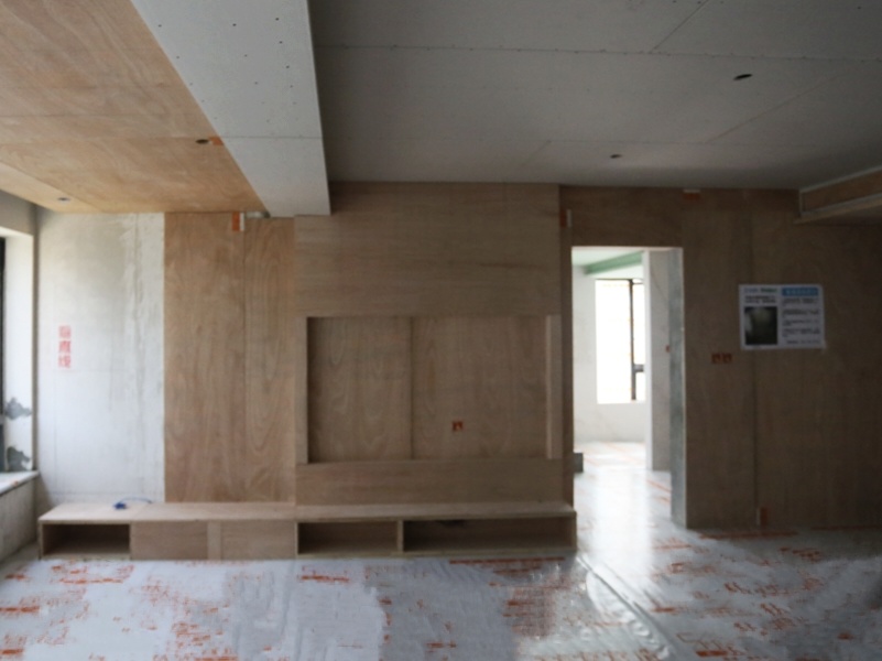 据设计图纸要求,把该房间需要软包墙面的装饰尺寸、造型等通过吊直、套方、找规矩、弹线等工序,把实际设计的尺寸与造型落实到墙面上。