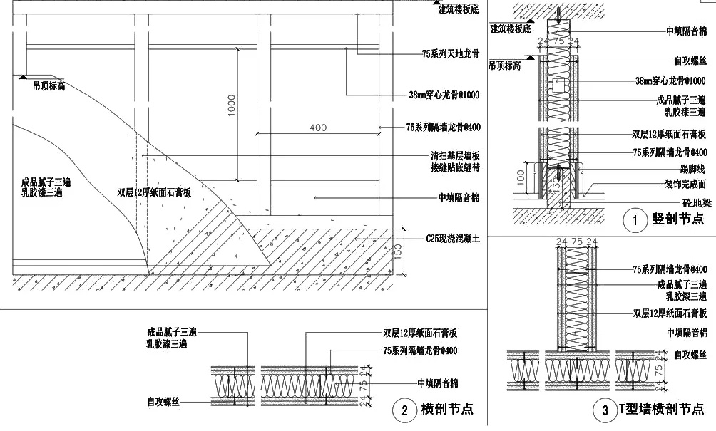 ① 竖向龙骨安装要留伸缩量,超过2m长的墙体要做控制变形缝,隔墙周边应留3mm的伸缩缝,这样可以减少因温度和湿度影响产生的变形和裂缝。