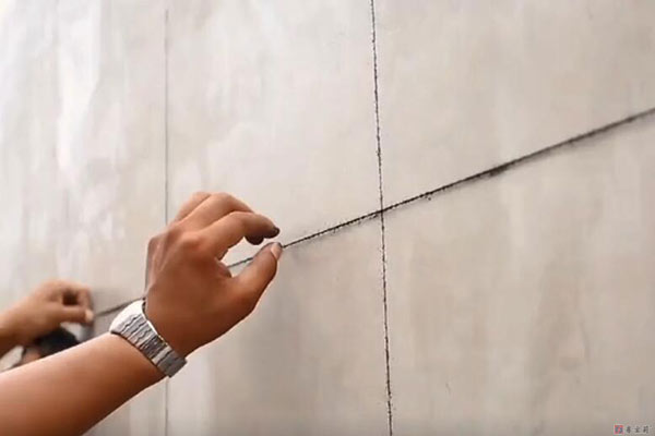 对墙面进行检查,确认墙面的平整度、垂直度、牢固度以及基层含水率是否符合施工要求。对施工材料检查是否有缺陷或色差。若有基层问题或材料问题,都要处理完成后才可以进行下一步施工。