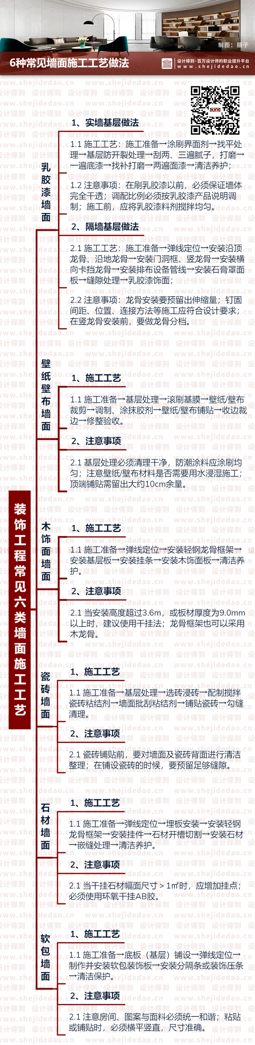 中午好,在我们的设计交流群经常有朋友问到关于主流墙面材料的工艺流程与细节。今天,我们把之前dop分享过的工艺做个整理,带你看看最主流的6类墙面施工工艺。