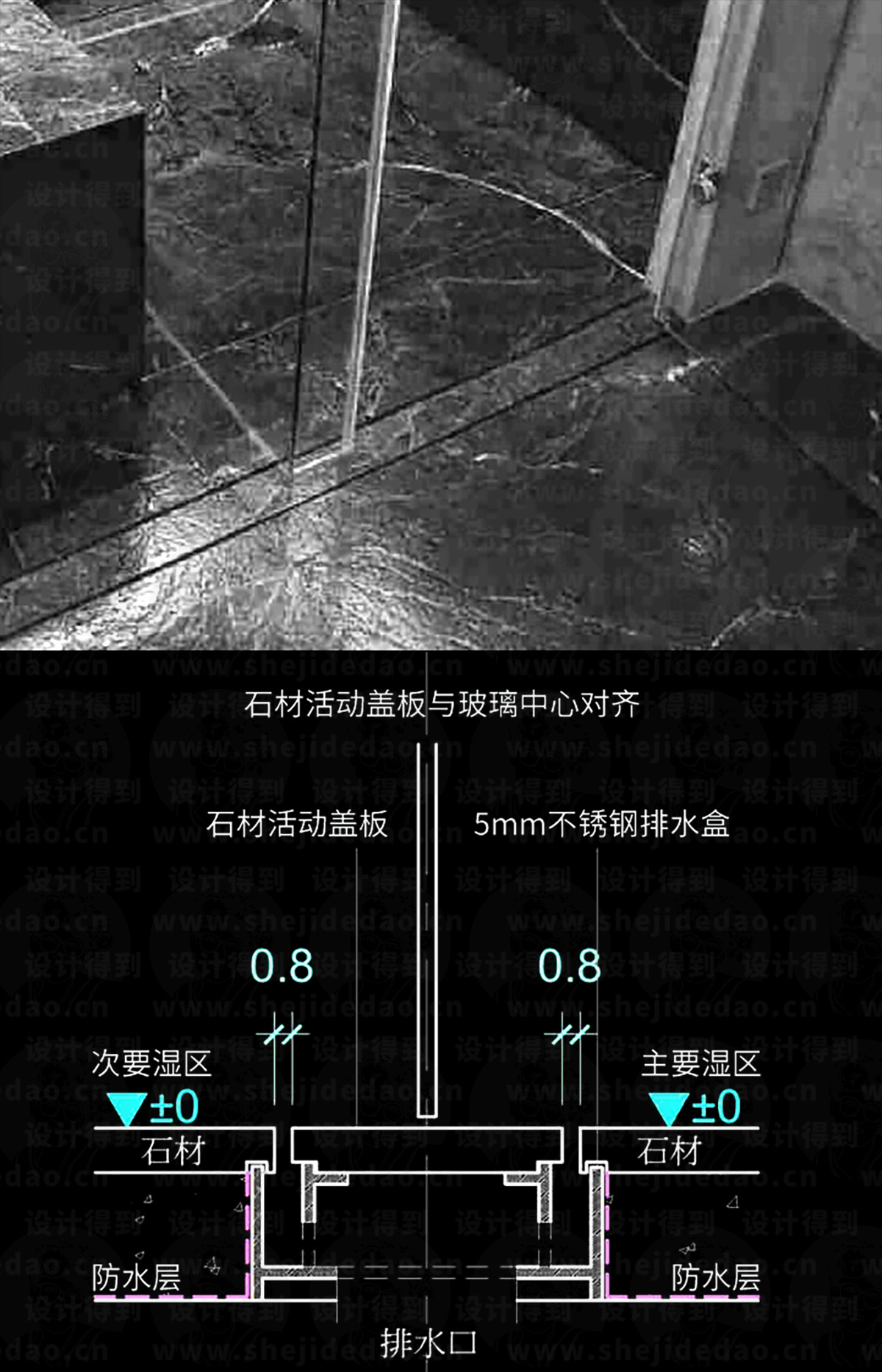 看一下这两张图,淋浴间止水坎通常都是采用混凝土或者不锈钢止水坎来防止淋浴间的水汽外溢到卫生间干区,这样做的弊端就是会有高高的门槛石。