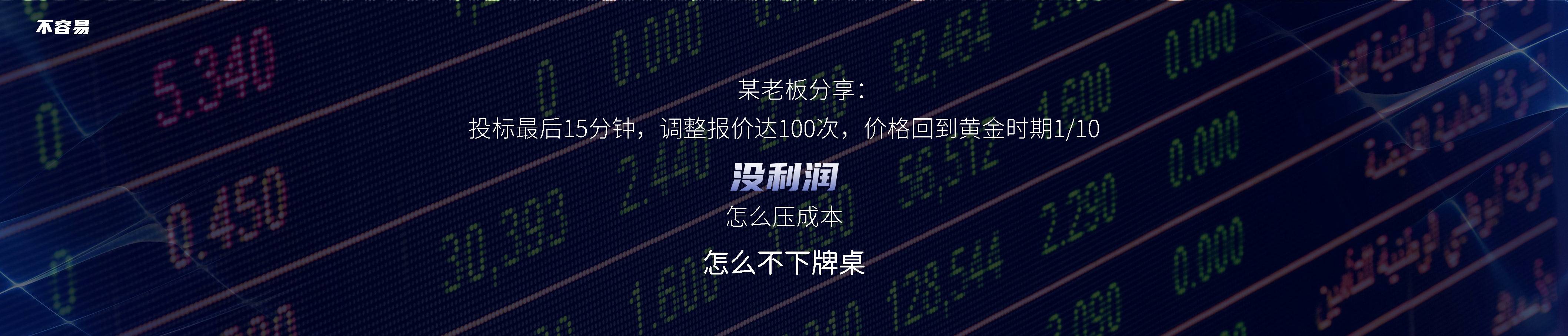 甲方采用线上报价系统,各家企业可实时查看自身排名,我的朋友告诉我,在商务标最后 15 分钟,他的团队调整报价超过 100 次 —— 平均每 10 秒就要调整一次。只因竞争对手互相持续降价,大家都能看到自身排名不断变动。这是怎样的一种心理考验?最终,他成功拿下项目,但报价仅为行业黄金时期的十分之一。