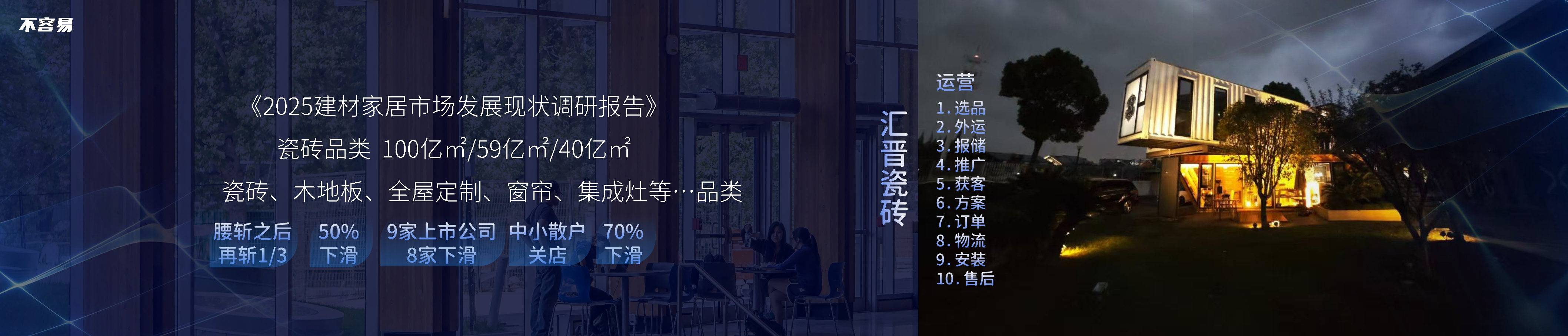 再分享个不容易的案例,我们材料美学馆的合作伙伴 —— 汇晋瓷砖的王总。三年前,他果断从传统家居卖场迁出,入驻智慧湾,以 50 平方米的集装箱作为展厅。如今,他的业务流程仍涵盖进口瓷砖选品至售后的 10 个环节,仓库面积达 2000 平方米,展厅也从 50 平方米扩展至 500 平方米。