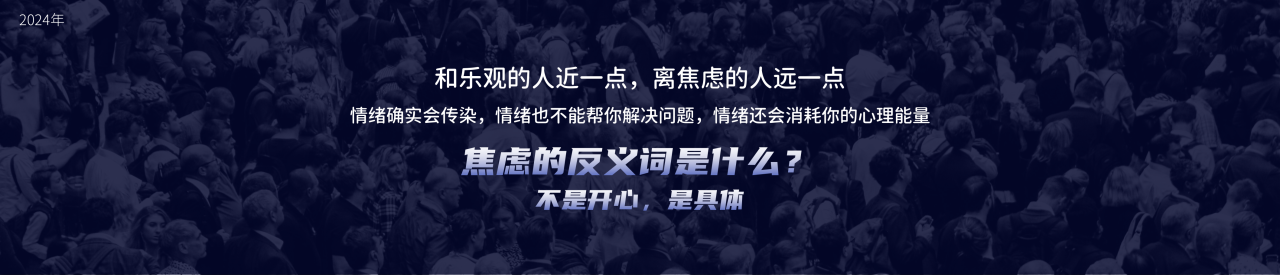 第一,和乐观的人近一点,离焦虑的人远一点。情绪确实会传染,情绪也不能帮你解决具体问题,情绪还会消耗我们的心理能量;