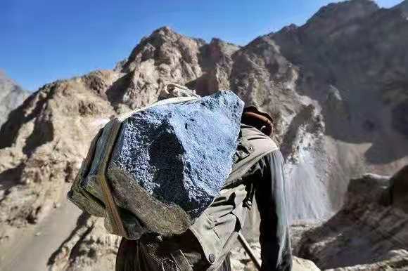 这位阿富汗的兄弟背着的阿富汗的国石的照片,诠释了天然青金石从矿山开采到成品的第一步。