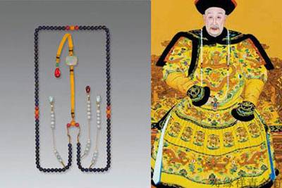 △清·康熙皇帝佩戴青金石108粒朝珠