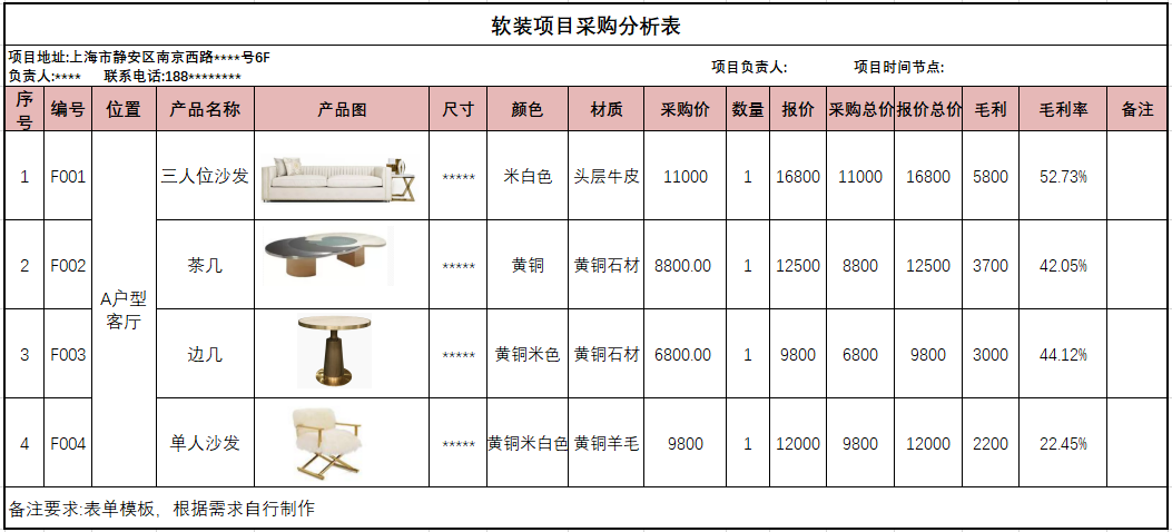 做采购分析表可以用Word或Excel表格来进行制作,具体内容包括序号、产品名称、图片、颜色、材质、采购价、报价、数量、总价、毛利等等,能够一目了然地看到所有有关产品的细节。在采购时也不会忙中出错,浪费时间。