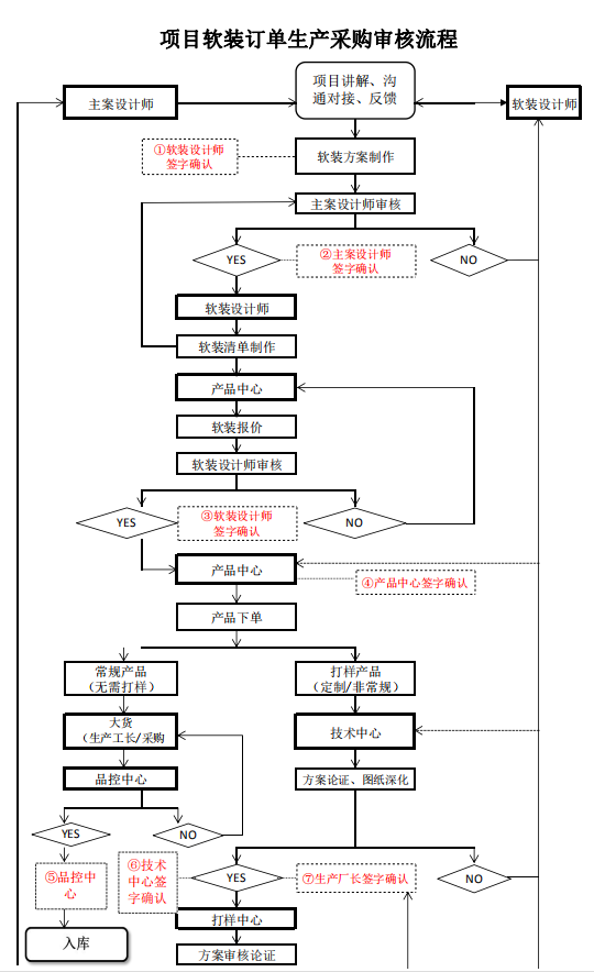 这个流程针对设计公司,分工比较完善的情况下制定的流程,需要有专业的软装设计组,品控中心(产品中心),采购下单,对接合同,物流跟踪等。