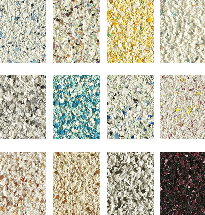 ⑧ 真石漆:真石漆是一种装饰效果酷似大理石、花岗岩的艺术涂料。主要采用各种颜色的天然石粉配制而成,应用于建筑内外墙的仿石材效果,因此又称液态石。