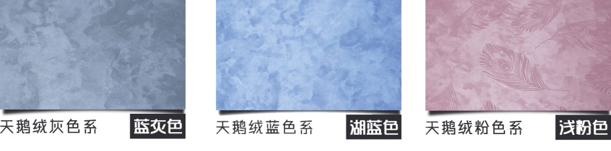 ⑤珍珠绒/天鹅绒艺术涂料:天鹅绒艺术涂料能够营造出独特的装饰效果,丝滑的表面呈现出天鹅绒般的视觉效果,光泽也会随着不同的光线折射而产生变化,营造出不同层次的光感效果。