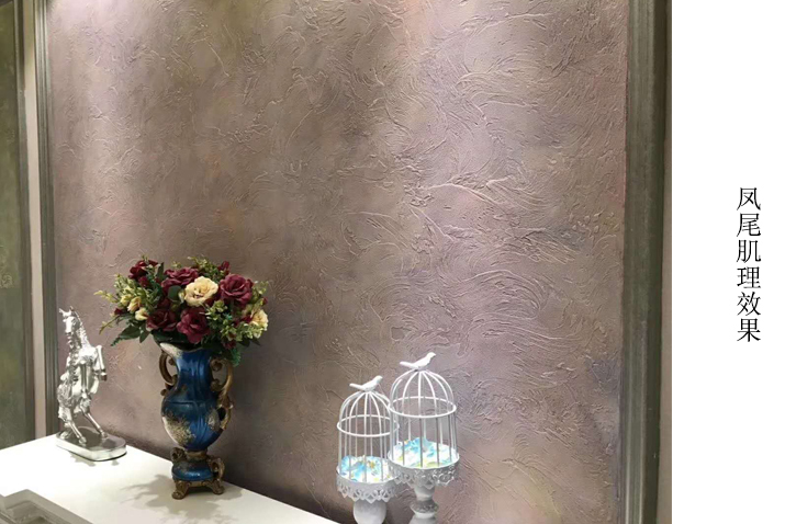 ⑦马来漆:马来漆源于威尼斯,盛行于欧美的艺术涂料,也叫威尼斯灰泥。因其装饰后纹理图案类似骏马奔驰过的蹄印而被称作“马来漆”。马来漆深浅色彩的调和变化,犹如云彩、大理石或鱼皱般的视觉幻彩,适用于任何室内装饰风格。