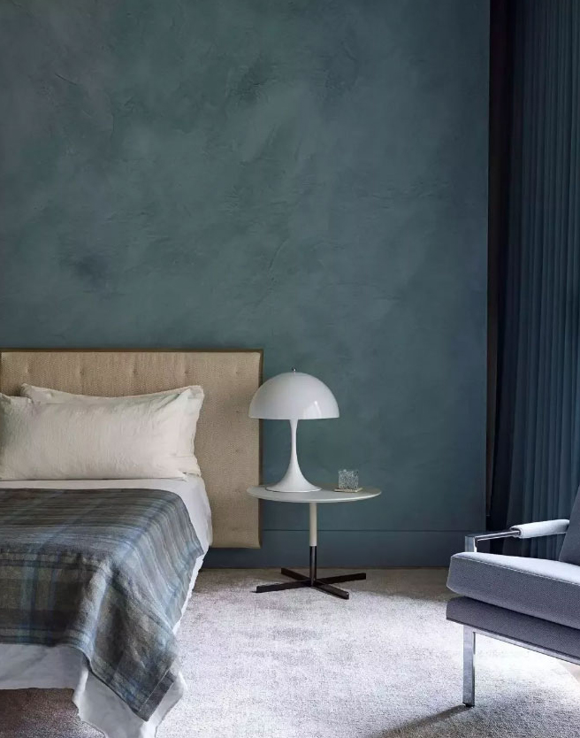 ① 质感水泥漆:之所以把这个放在第一个,是因为在工业风的设计中,我们常会见到类似水泥质感的墙面,很多设计师对清水混凝土的墙面存在很大疑问,不知道是怎么做的,潜意识里知道肯定不是水泥上墙做的。那这种效果怎样才能达到呢?