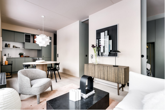 这是位于斯德哥尔摩 Östermalm 的一处公寓,247平米的宽敞空间内将现代与古典元素混搭,营造出优雅又个性的居家环境。